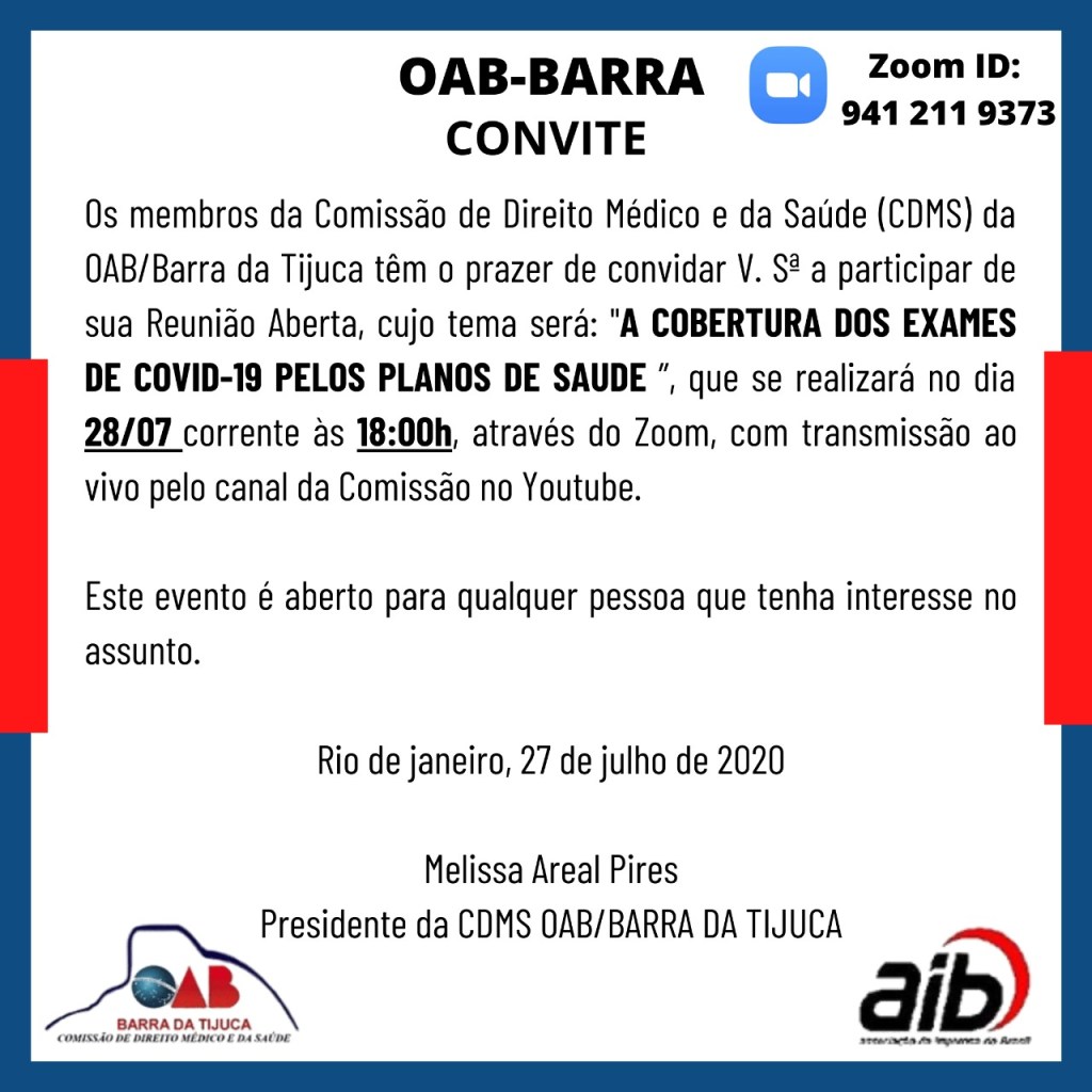 A Comissão de Direito Médico e da Saúde da OAB Barra da Tijuca agradece a sua participação.