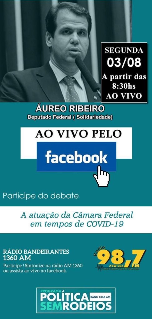 Em nosso próximo programa, desta segunda-feira, dia 03-08, vamos conversar ao vivo com o deputado federal Áureo Ribeiro ( SD ) sobre a atuação da câmara federal em tempos de COVID-19.