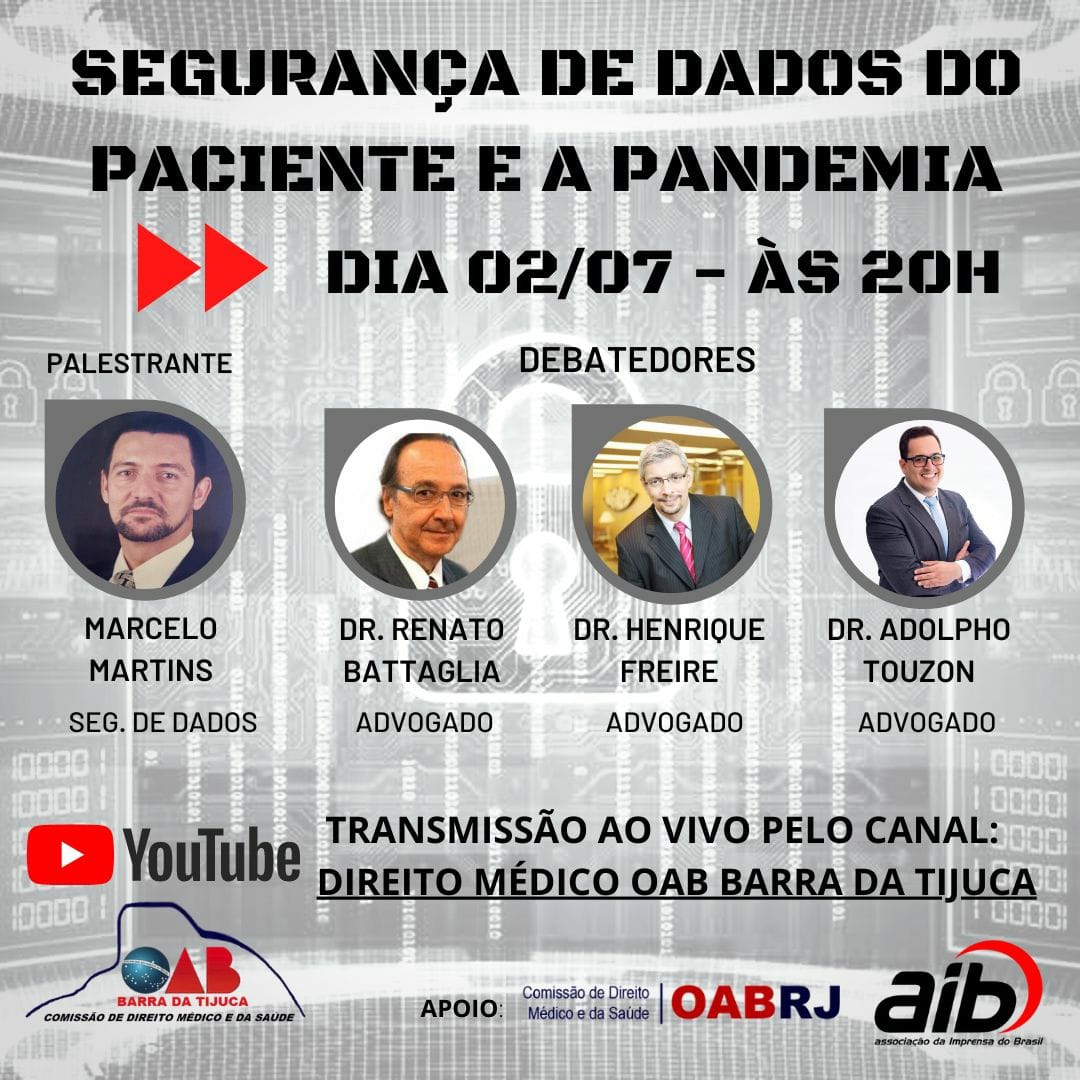 Comissão de Direito Médico e da Saúde da OAB Barra da Tijuca /RJ – Evento – Segurança de Dados do Paciente e a Pandemia – 02/7/2020