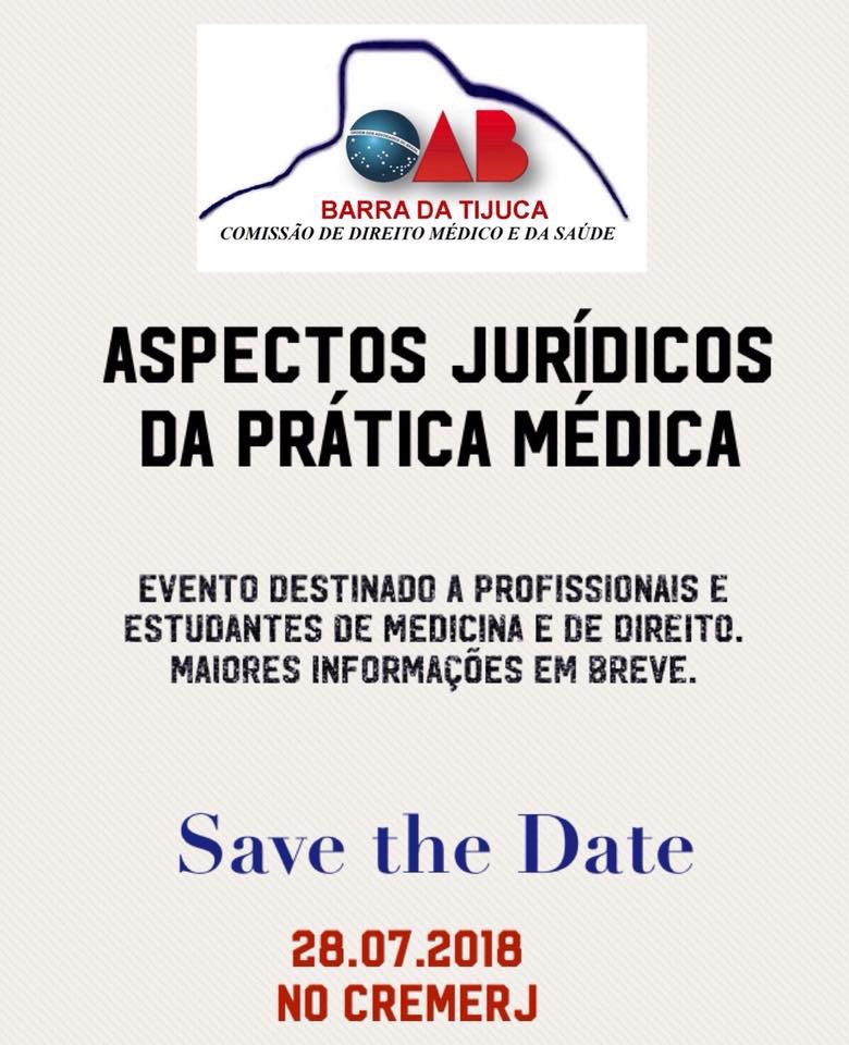 Comissão de Direito Médico e da Saúde da OAB Barra da Tijuca – Evento – Aspectos Jurídicos da Prática Médica – 28/7/2018