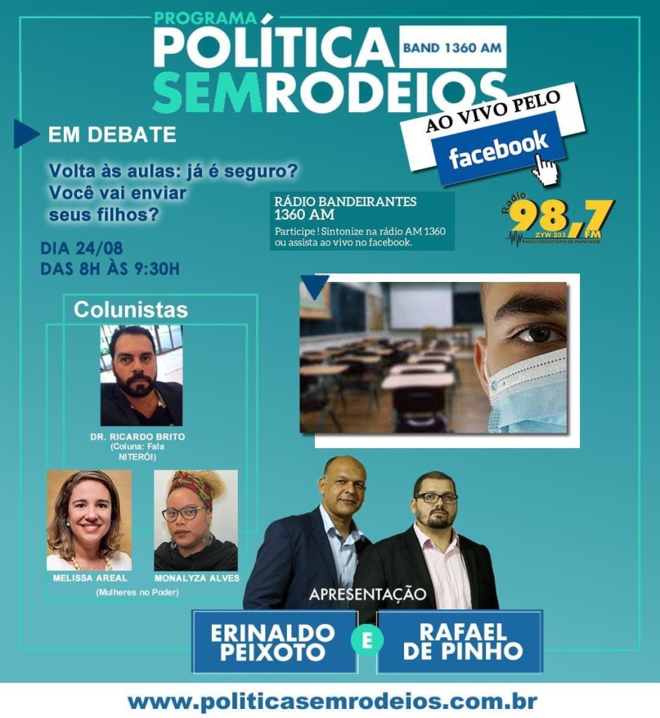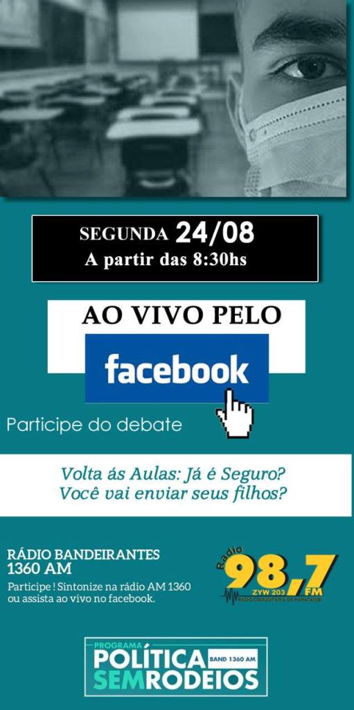 Nesta segunda-feira, dia 24-08, vamos debater ao vivo sobre o retorno às aulas. Você enviará seus filhos?