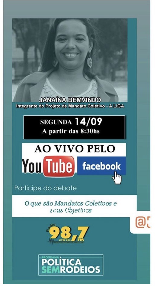 Nesta segunda-feira, dia 14-09, vamos debater ao vivo sobre a experiência do mantado coletivo.