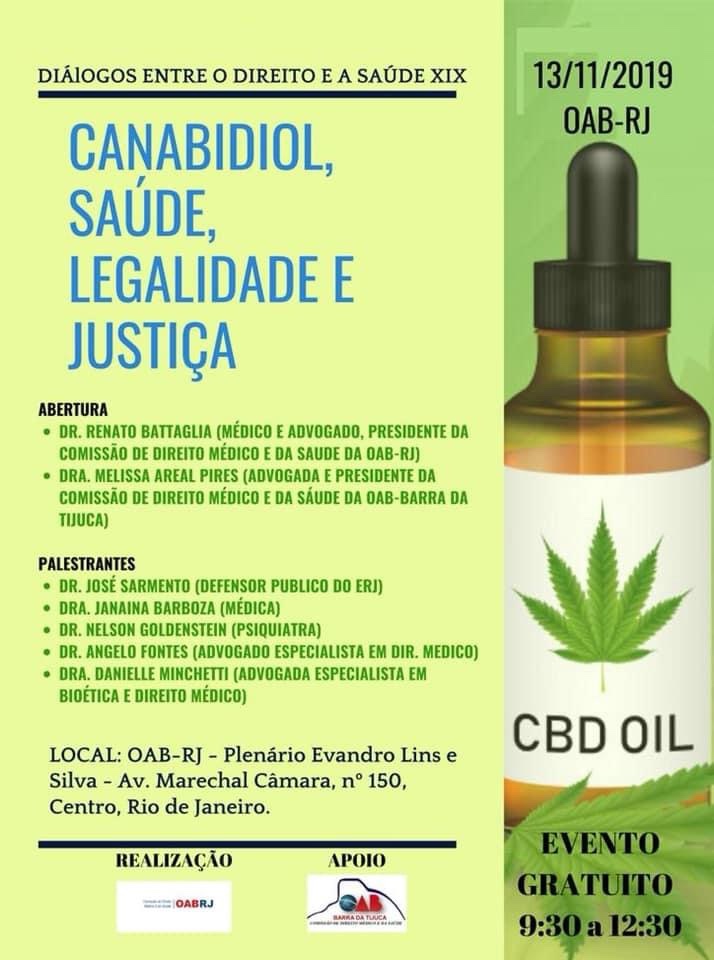 Comissão de Direito Médico e da Saúde da OAB Barra da Tijuca e OAB/RJ – Evento – Canabidiol, Saúde, Legalidade e Justiça – 13/11/2019