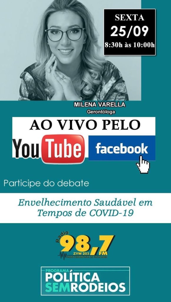 Nesta sexta-feira, dia 25-09, vamos debater ao vivo sobre o Envelhecimento Saudável em Tempos de COVID-19.