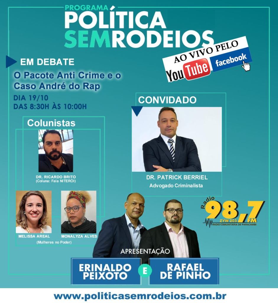 Nesta segunda-feira, dia 19-10, vamos debater ao vivo sobre – O Pacote Anti Crime e o Caso André do Rap –