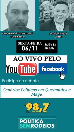 Nesta sexta-feira, dia 06-11, vamos debater ao vivo sobre os Cenários Políticos em Queimados e Magé