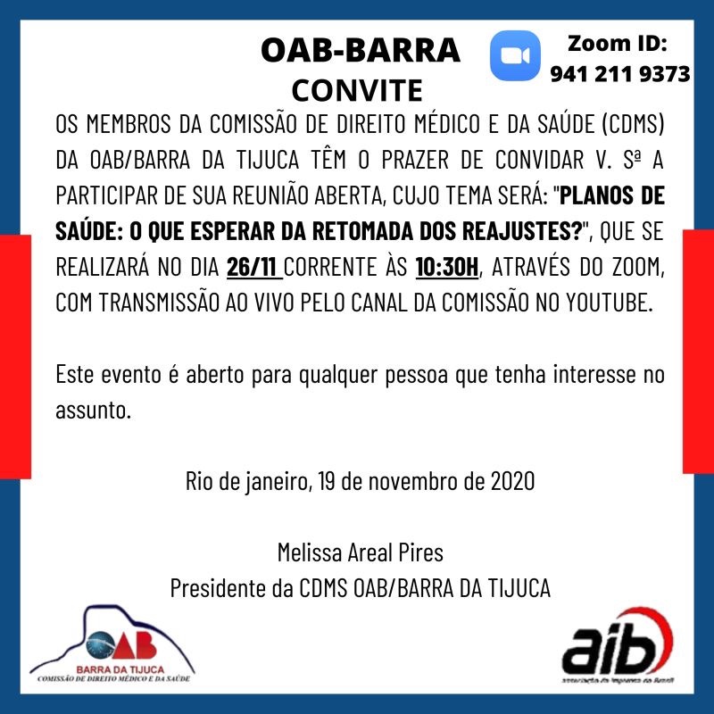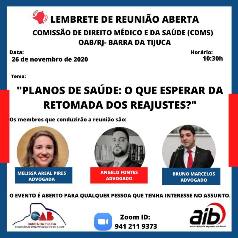 Comissão de Direito Médico e da Saúde da OAB Barra da Tijuca / RJ – Reunião Aberta – 26/11/2020