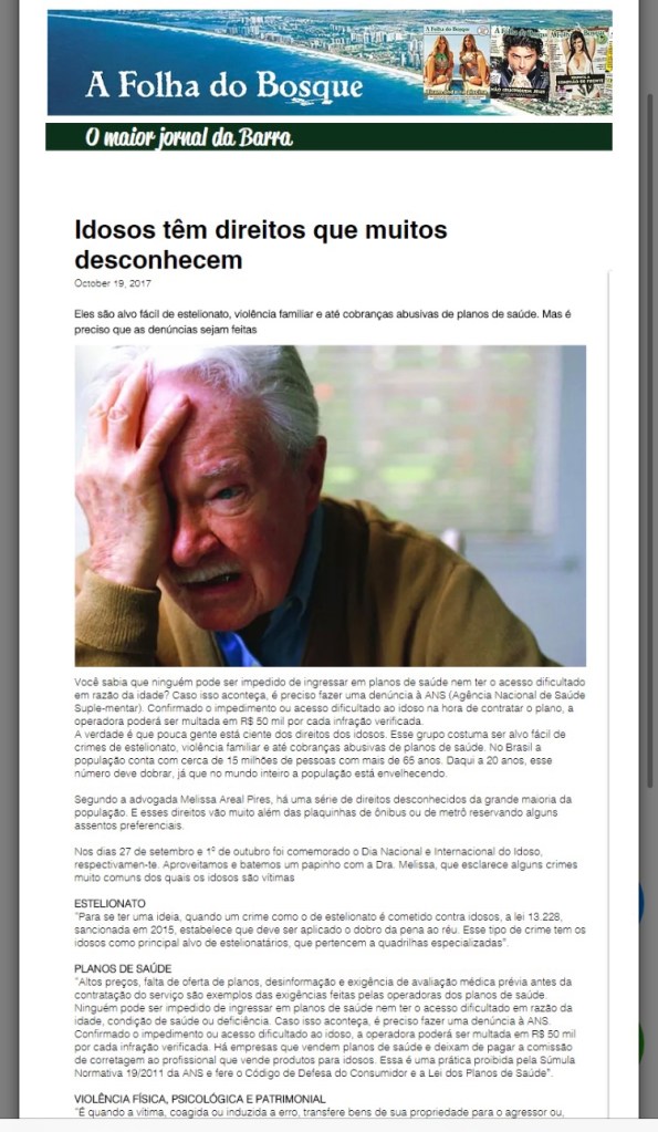 Folha do Bosque – Idosos têm direitos que muitos desconhecem – 19/10/2017