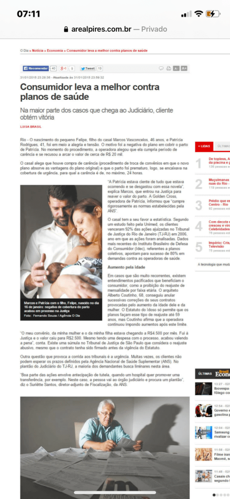Jornal O Dia – Consumidor leva a melhor contra planos de saúde – 31/01/2015 dezembro 16, 2020dezembro 16, 2020 / Melissa Areal Pires 31.01_O_Dia_Consumidor_leva_a_melhor_contra_planos_de_saúde_Baixar https://arealpires.com.br/clipping/consumidor-leva-a-melhor-contra-planos-de-saude/ Compartilhe Clique para compartilhar no X(abre em nova janela) 18+ Clique para compartilhar no Facebook(abre em nova janela) Facebook Clique para enviar um link por e-mail para um amigo(abre em nova janela) E-mail Clique para imprimir(abre em nova janela) Imprimir Clique para compartilhar no LinkedIn(abre em nova janela) LinkedIn Clique para compartilhar no Tumblr(abre em nova janela) Tumblr Clique para compartilhar no WhatsApp(abre em nova janela) WhatsApp Clique para compartilhar no Pinterest(abre em nova janela) Pinterest Clique para compartilhar no Telegram(abre em nova janela) Telegram Curtir Carregando... Relacionado