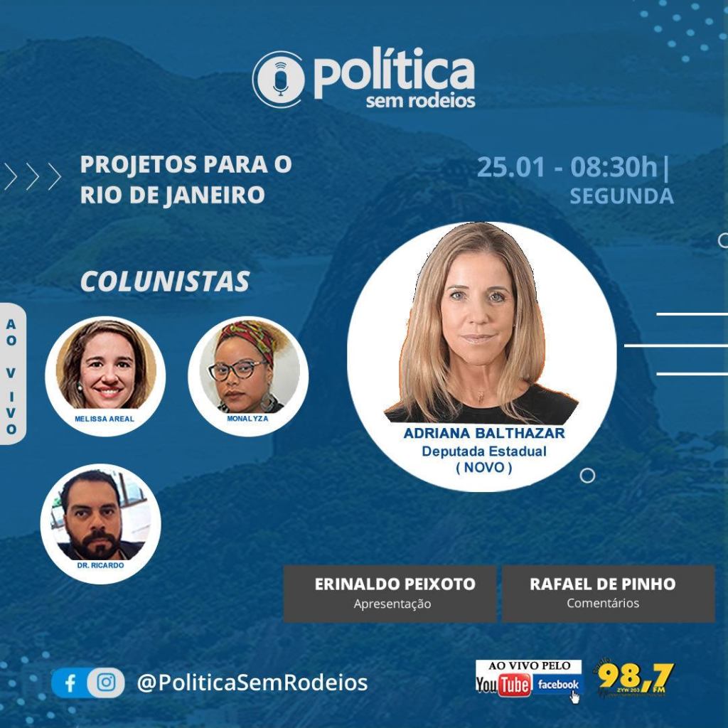 Nesta segunda-feira, dia 25-01-2021, vamos debater ao vivo, sobre os Projetos para o Rio de Janeiro.