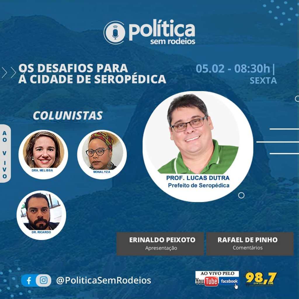 Nesta sexta-feira, dia 05-02-2021, vamos debater ao vivo, sobre a Cidade de Seropédica com o prefeito da cidade, @professor.lucas.dutra