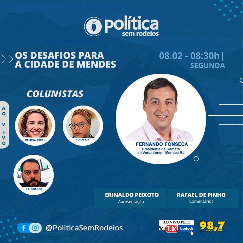 Nesta segunda-feira, dia 08-02-2021, vamos debater ao vivo, sobre a Cidade de Mendes com o presidente da Câmara: Fernando Fonseca.
