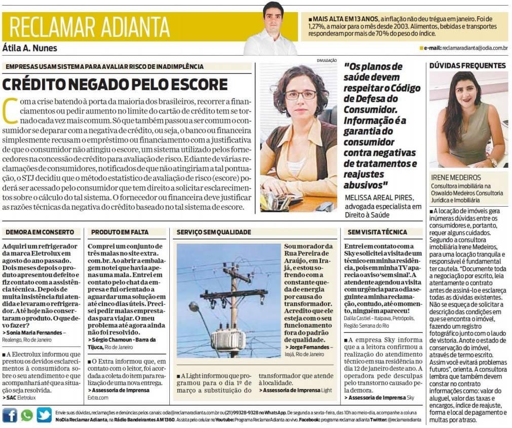 Jornal O Dia – Coluna Reclamar Adianta – 11/02/2016