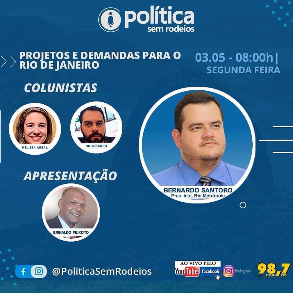 Na próxima sexta-feira, dia 03-05-2021, vamos debater ao vivo sobre o Instituto Rio Metrópole, @institutoriometropole com Bernardo Santoro, @bernardosantorooficial
