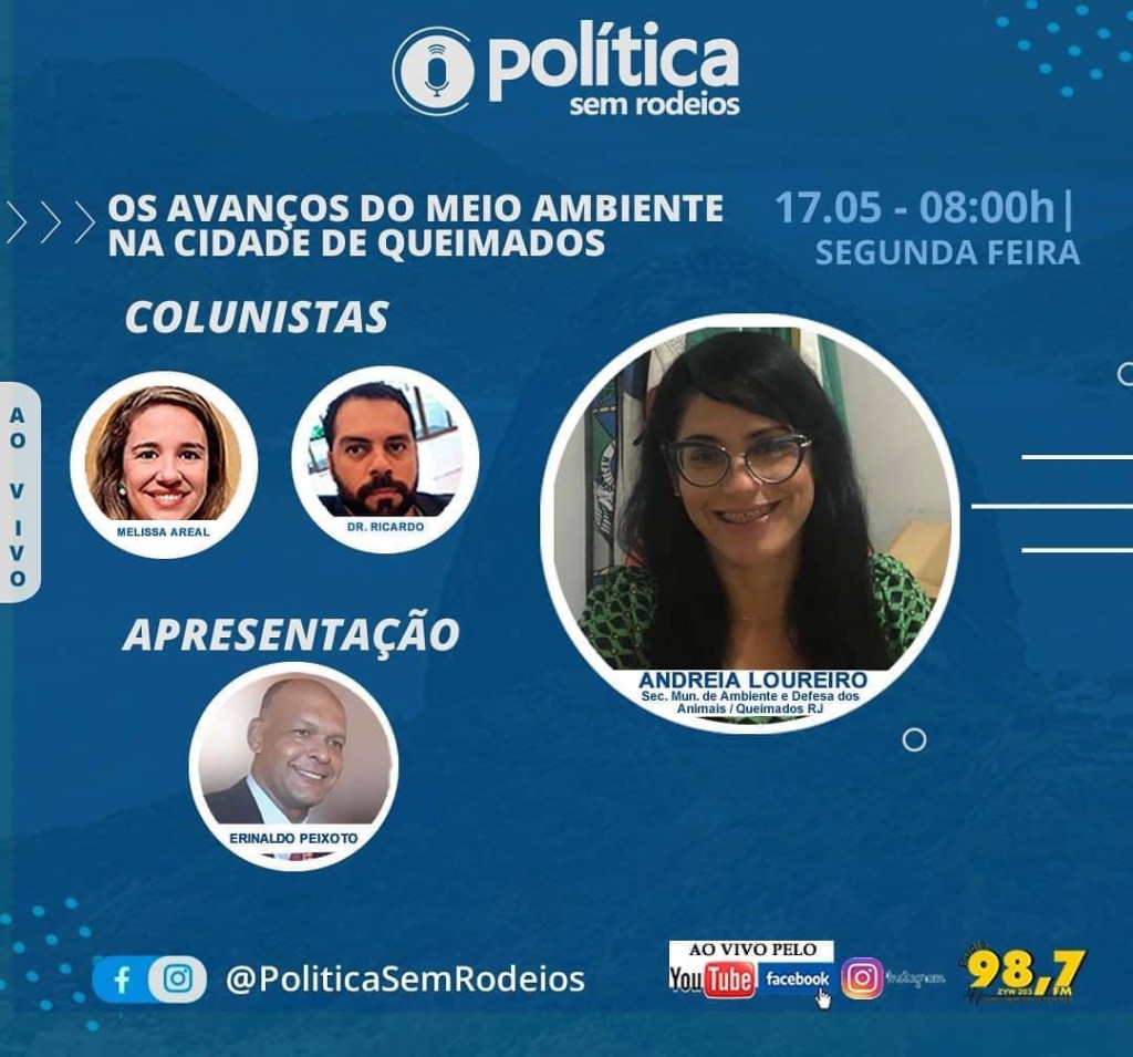 Na próxima segunda-feira, dia 17-05-2021, vamos debater ao vivo sobre Meio Ambiente na Cidade de Queimados com a Secretária Andreia Loureiro (@andreia_loureiro_carb)