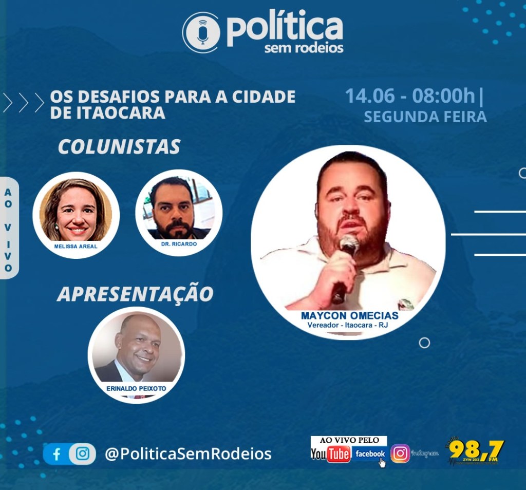 Na próxima segunda-feira, dia 14-06-2021, vamos debater ao vivo sobre os desafios da Cidade de Itaocarai, com o vereador Maycon Omecias.( @mayconomecias )