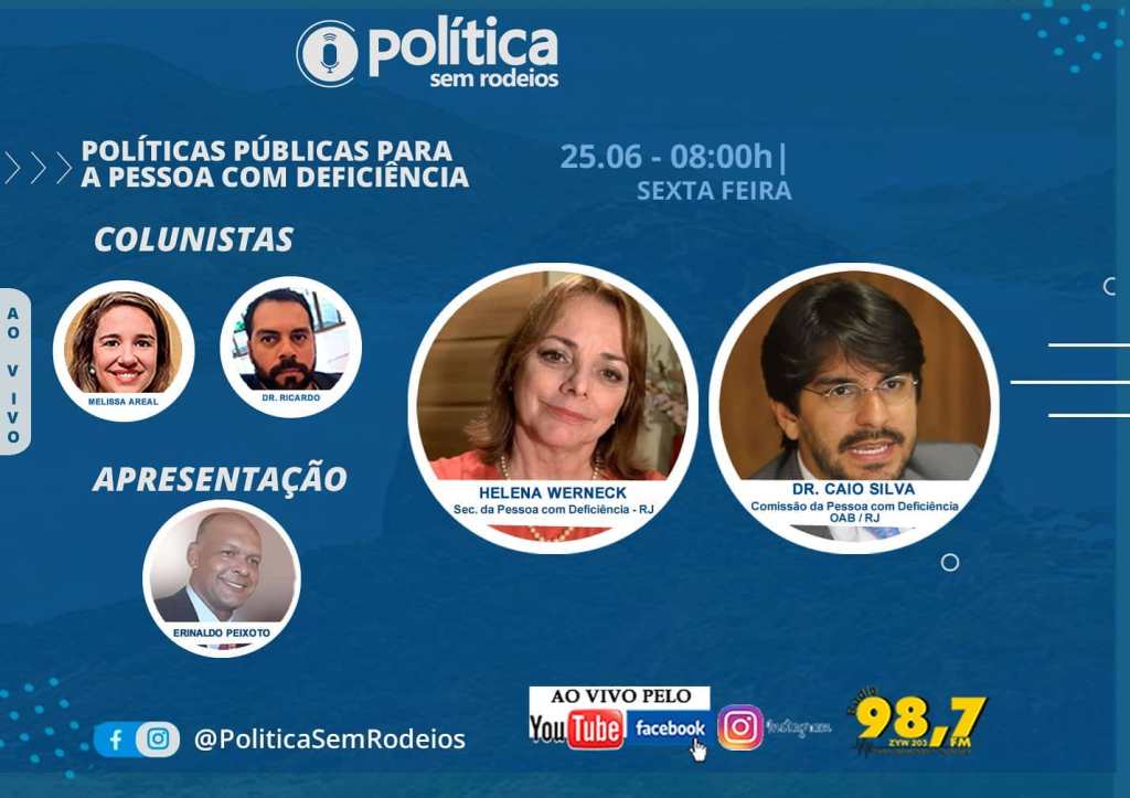 Na próxima sexta-feira, dia 25-06-2021, vamos debater ao vivo sobre Políticas Públicas para Pessoas Com Deficiência, com a Secretária Municipal da pasta no Rio De Janeiro @smpdrio , @werneckhelena e o presidente da comissão do segmento na @oabrio@caio_silva_sousa .