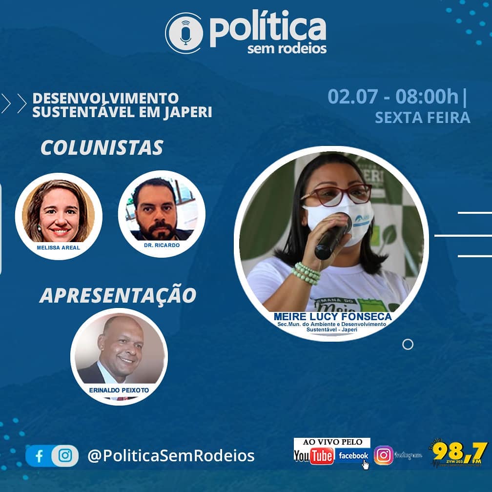 Na próxima sexta-feira, dia 02-07-2021, vamos debater ao vivo sobre o Desenvolvimento Sustentável em Japeri com a secretária @meirelucyambiental