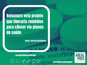 O presidente Jair Bolsonaro vetou nesta segunda-feira, 26, o projeto de lei que abriria espaço para a incorporação por planos privados de saúde de 23 novos medicamentos orais para pacientes diagnosticados com câncer. Aprovada pelo Congresso no início deste mês, a proposta era defendida por entidades médicas, que viam mais conforto e opções para quem estivesse em tratamento. Enfrentava, no entanto, resistência de operadoras de saúde.