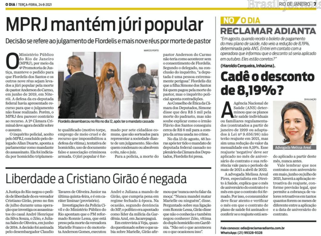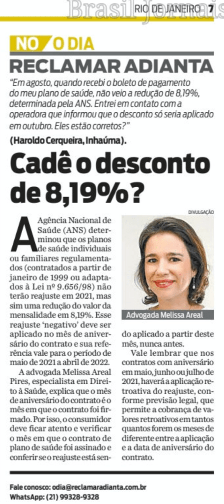 Jornal O Dia – Coluna Reclamar Adianta – Cadê o desconto de 8,19? – 24/8/2021