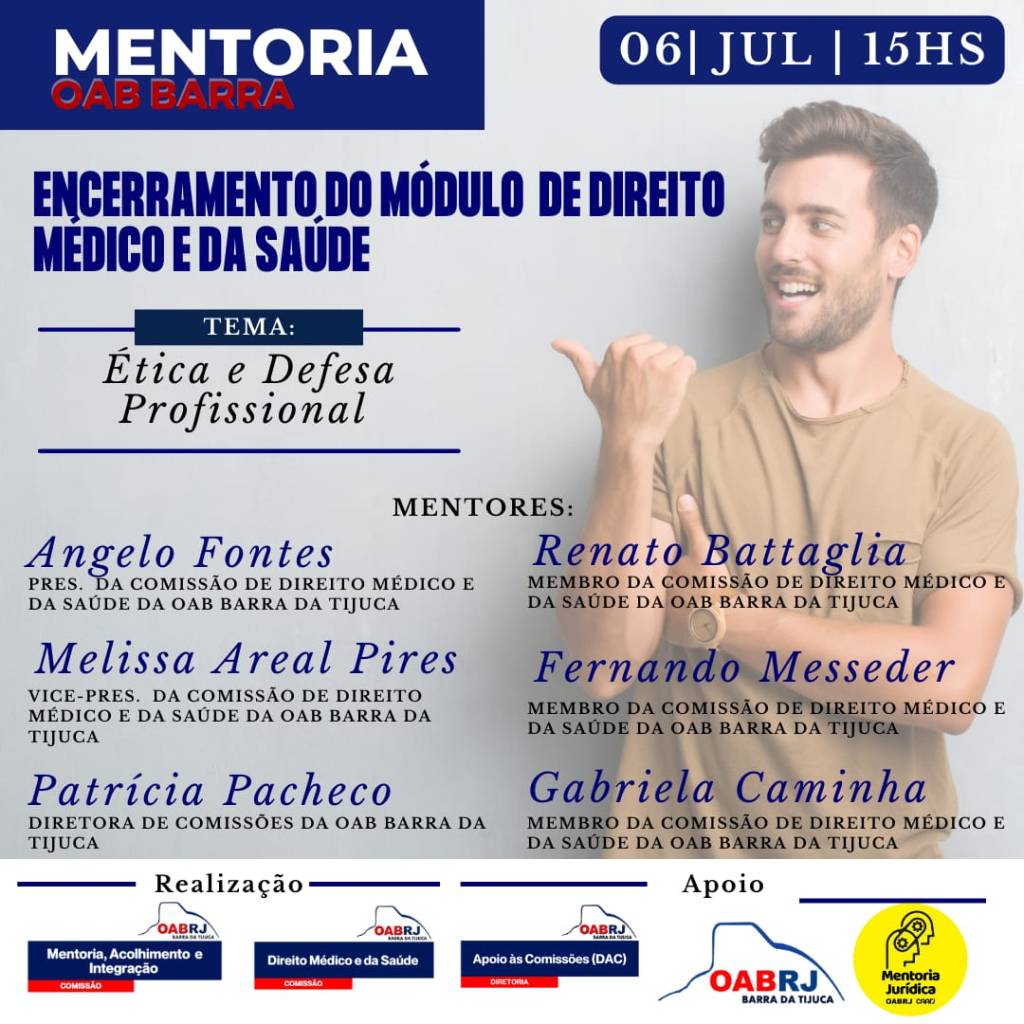 Comissão de Direito Médico e da Saúde da OAB Barra da Tijuca/RJ – Mentoria em Direito Médico e da Saúde – Ética e Defesa Profissional – 06/7/2022