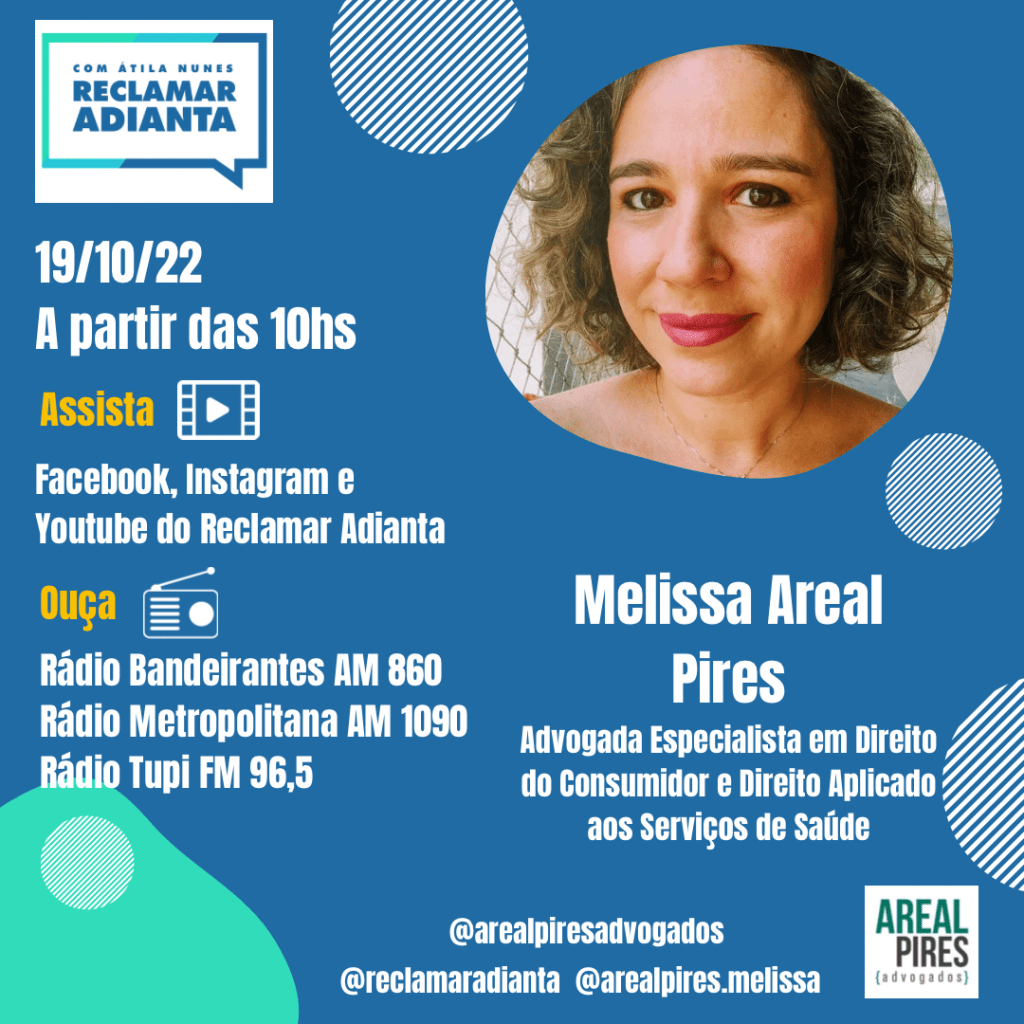 Hoje é dia da minha participação no Reclamar Adianta @reclamaadianta, transmitido ao vivo pelas Rádios Bandeirantes AM 860 e Metropolitana AM 1090 e nas redes sociais do programa, apresentado por Átila Nunes @atilanunesoficial e Renata Maia @renata_maia2.