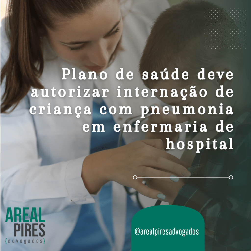 Ele afirmou que, em 14 de dezembro de 2022, a criança deu entrada no posto de atendimento de urgência e emergência pediátrico do hospital do plano de saúde, tendo sido diagnosticada com um quadro grave de pneumonia por Covid-19, necessitando de internamento em enfermaria para tratamento, conforme prontuário médico anexado aos autos.