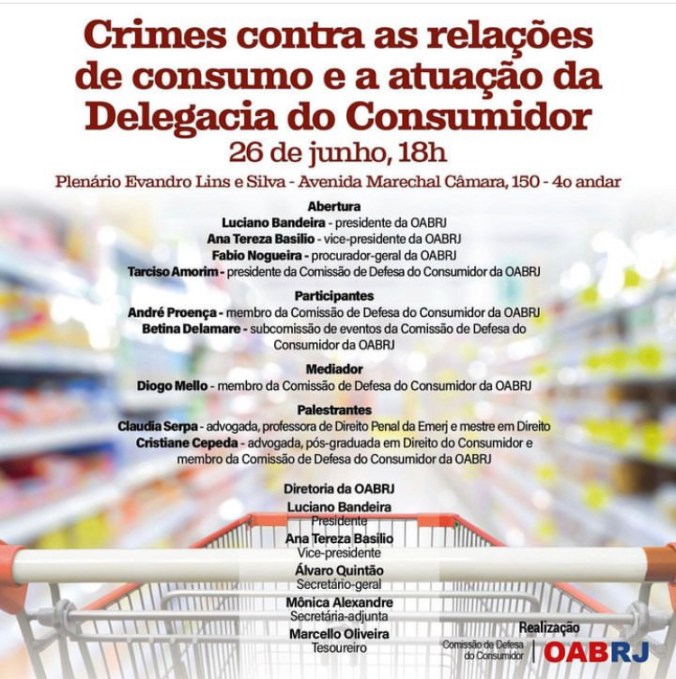 Ontem tive a oportunidade de comparecer ao evento promovido pela Comissão de Defesa do Consumidor da OAB/RJ para debate sobre assunto “Crimes contra as relações de consumo e a atuação da Delegacia do Consumidor”.