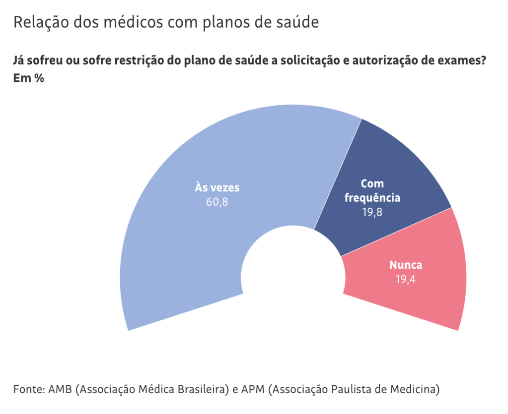 Também há a informação de que 80,6% relataram já ter sofrido restrição a exames que solicitaram aos pacientes.