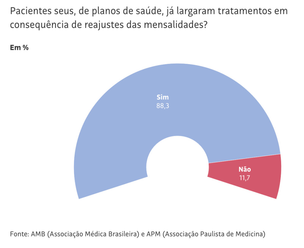 Já a FenaSaúde (Federação Nacional de Saúde Suplementar), que representa os maiores planos do país, disse que os dados da pesquisa “não condizem com as condutas seguidas por suas associadas, que hoje atendem a cerca de 30% dos beneficiários de planos médico-hospitalares do mercado”.