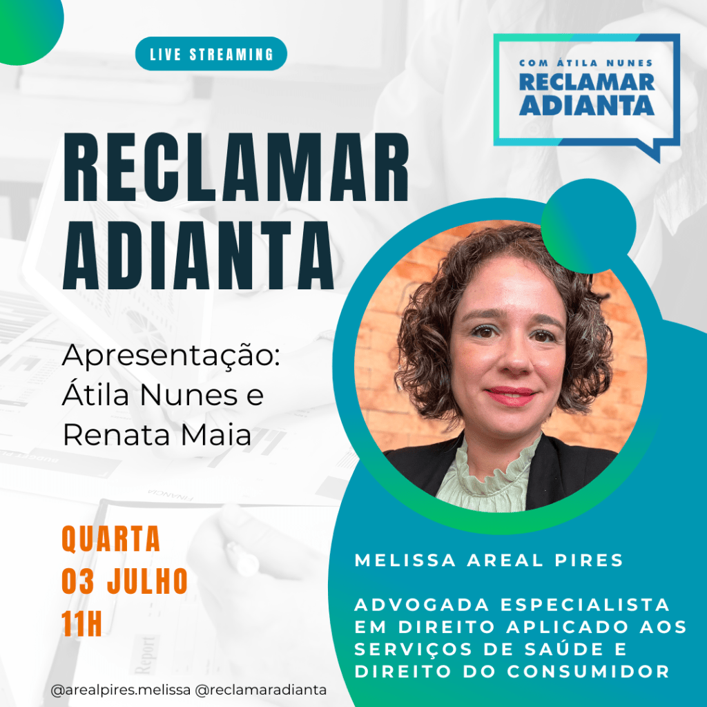 Acompanhe a transmissão ao vivo pelo Instagram (@reclamaradianta) e, para acompanhar pelo YouTube e Facebook do Reclamar Adianta, acesse, a partir das 10h, os links que disponibilizo abaixo.