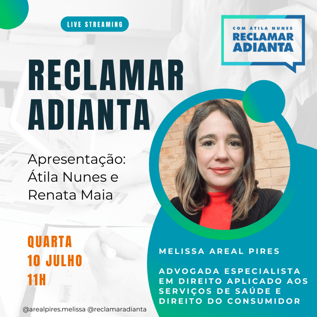 Acompanhe a transmissão ao vivo pelo Instagram (@reclamaradianta) e, para acompanhar pelo YouTube e Facebook do Reclamar Adianta, acesse, a partir das 10h, os links que disponibilizo abaixo.