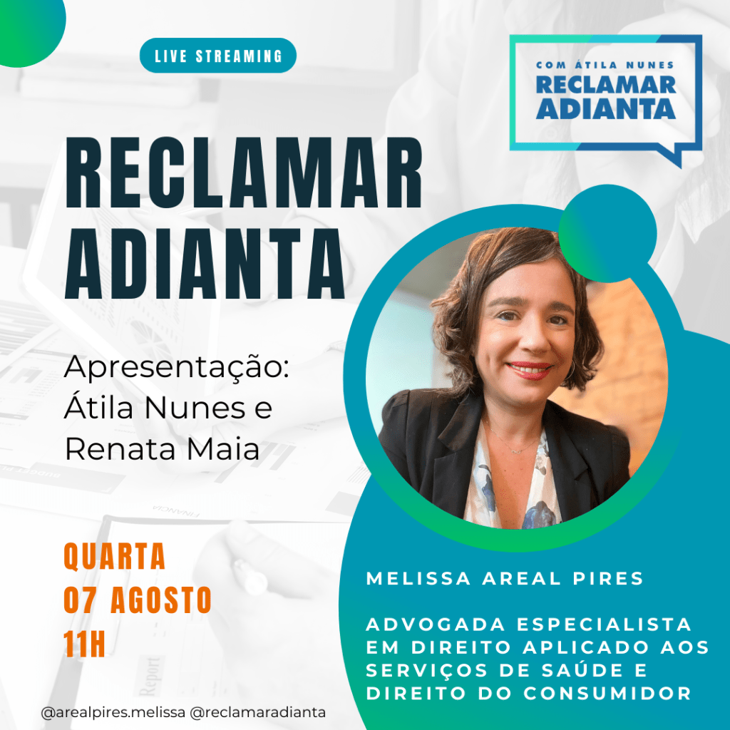 Hoje, 07/8/2024, é dia da minha participação no Programa Reclamar Adianta @reclamaradianta, apresentado pelo Deputado Estadual Átila Nunes @atilanunesoficial e jornalista Renata Maia @renata.maia2.