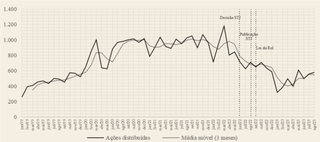 Segundo as instituições, os resultados encontrados demonstram que em todo o ano seguinte à promulgação da Lei não houve variação significativa do padrão de judicialização observado em relação ao dos anos anteriores, não sendo possível identificar impactos relevantes da alteração legislativa sobre a judicialização.
