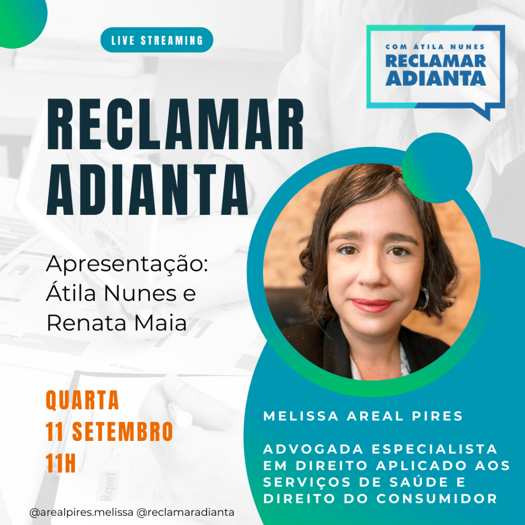 A próxima quarta-feira, 11/9/2024, é dia da minha participação no Programa Reclamar Adianta @reclamaradianta, apresentado pelo Deputado Estadual Átila Nunes @atilanunesoficial e jornalista Renata Maia @renata.maia2.