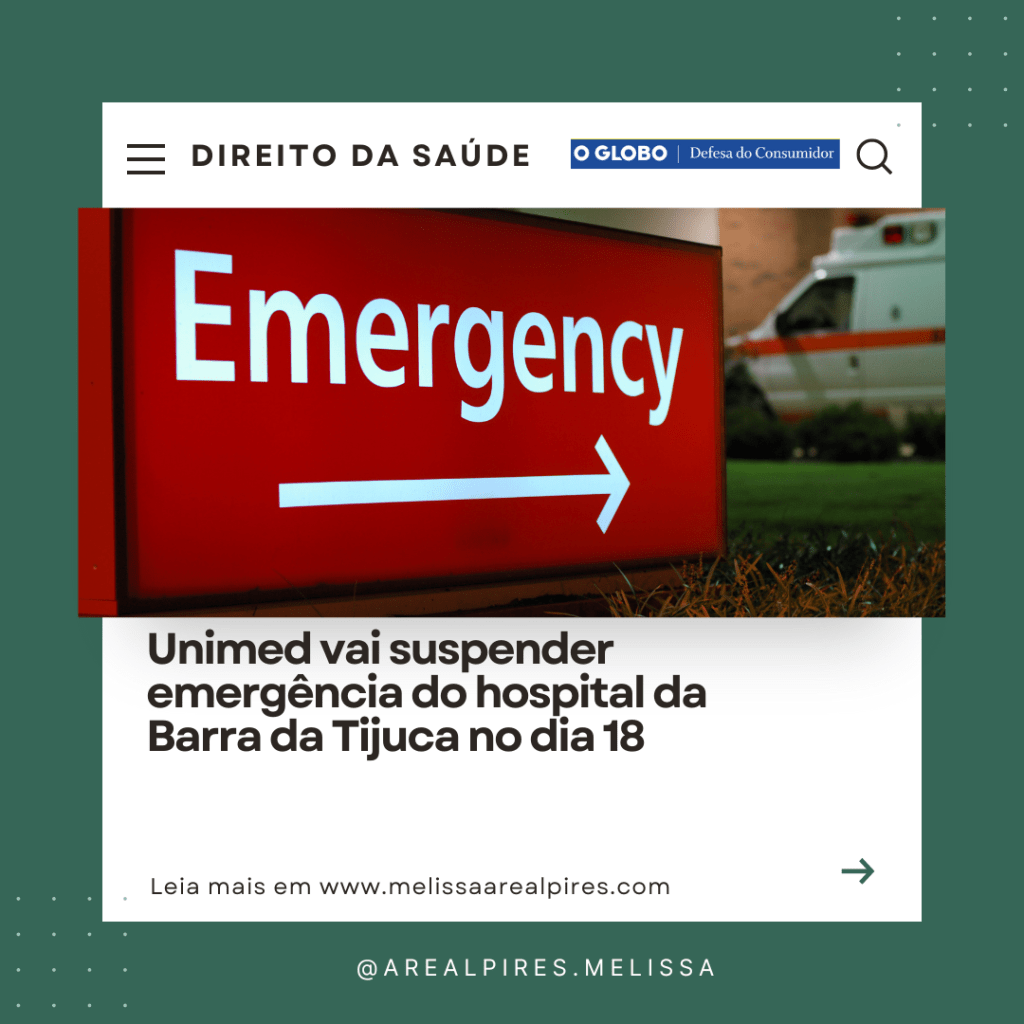 A Unimed Ferj vai suspender o atendimento de emergência no hospital da operadora, na Barra da Tijuca, a partir do próximo dia 18. De acordo com a cooperativa, o atendimento passa a acontecer exclusivamente na unidade de pronto atendimento também no bairro da Zona Oeste.