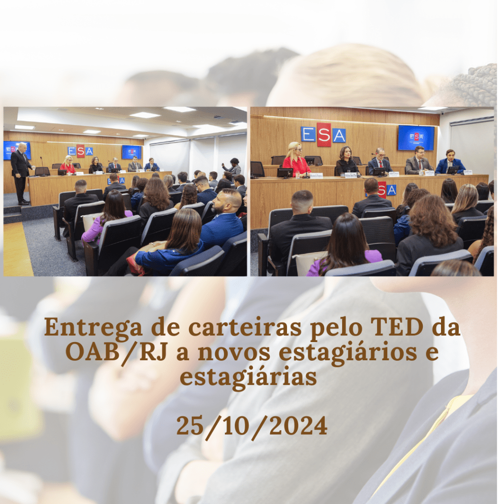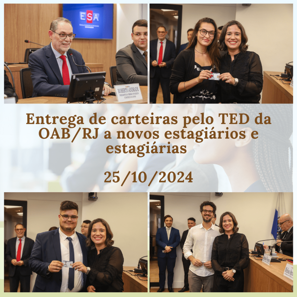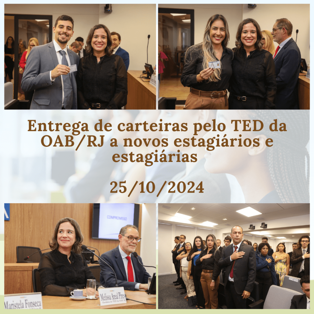 No último dia 25 de outubro de 2024, tive a oportunidade de participar da Solenidade de Entrega de Carteiras a novos estagiários e estagiárias do sistema da OAB/RJ, na qualidade de Diretora Ouvidora do TED.
