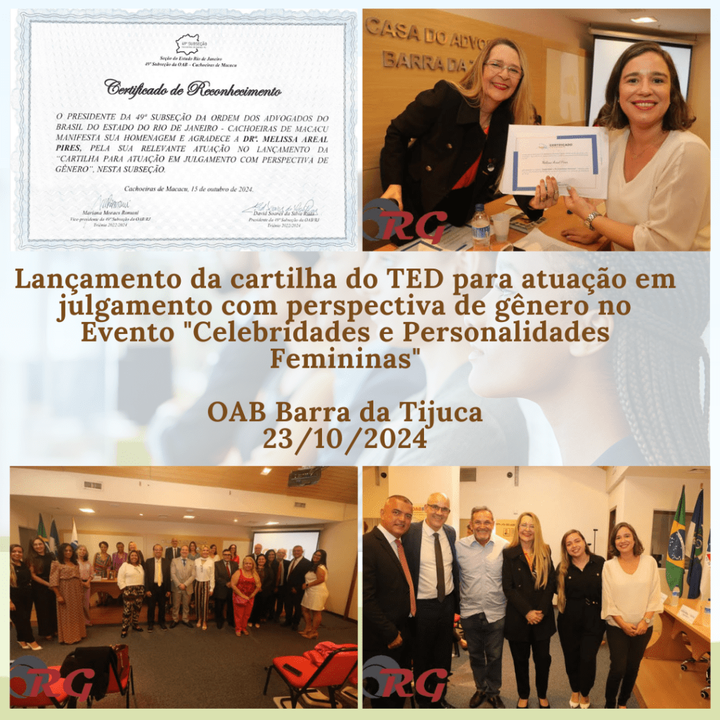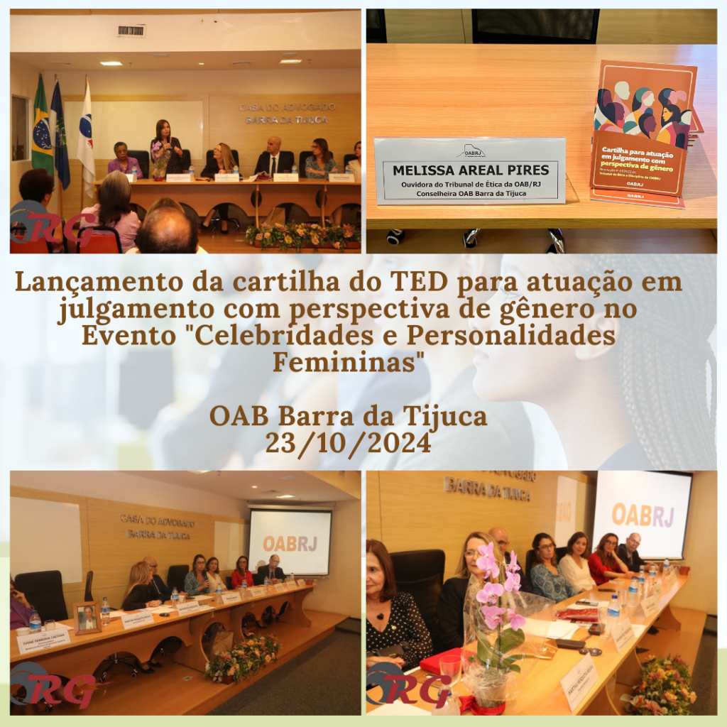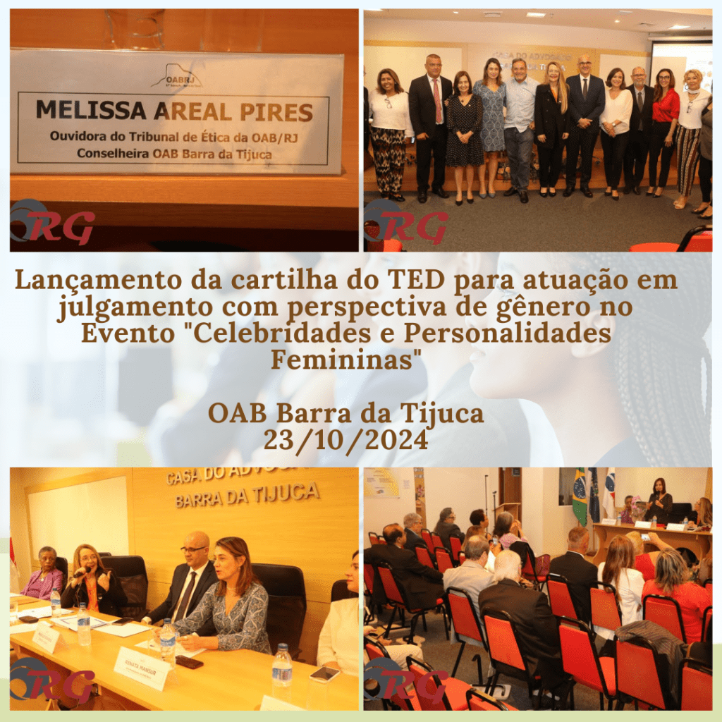 No último dia 23/10, tive a oportunidade de apresentar a Cartilha do TED para atuação em julgamento com perspectiva de gênero, no evento promovido na OAB Barra da Tijuca pela Diretoria das Mulheres, representada pela Dra Ana Beatriz Nogueira, com o tema “Celebridade e Personalidades Femininas”.