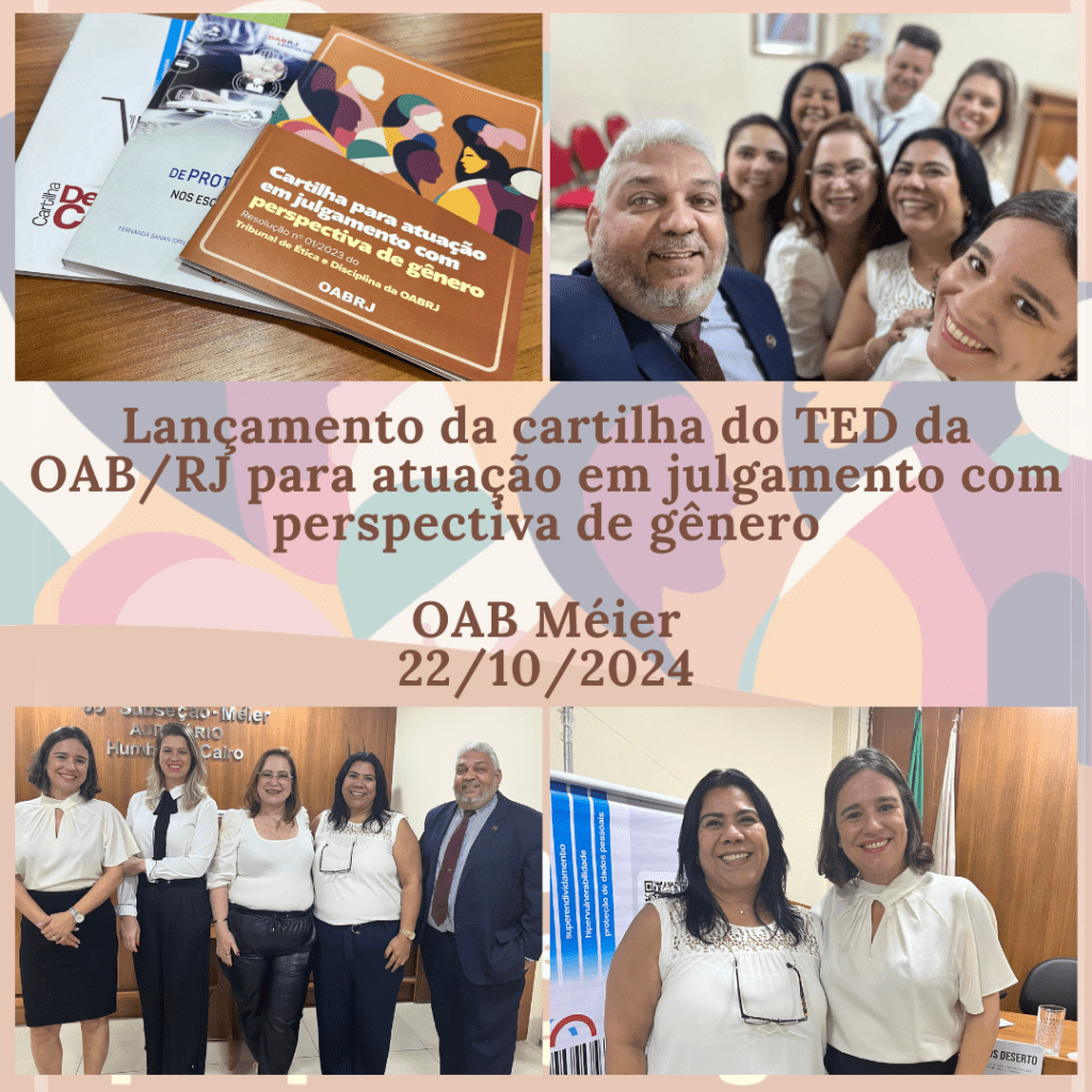 Em 22/10, o TED da OAB/RJ @oabrio esteve na 55ª Subseção Méier @oabmeier para promover o lançamento da Cartilha para Atuação com Perspectiva de Gênero, ao lado da @cdcoabrj da OABRJ, que lançou a Cartilha de Direito do Consumidor, e da Comissão de Proteção de Dados da 58ª Subseção OAB Leopoldina, que lançou o livro Lei Geral de Proteção de Dados nos Escritórios de Advocacia.