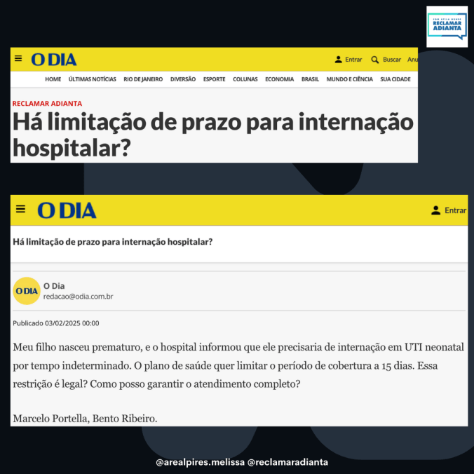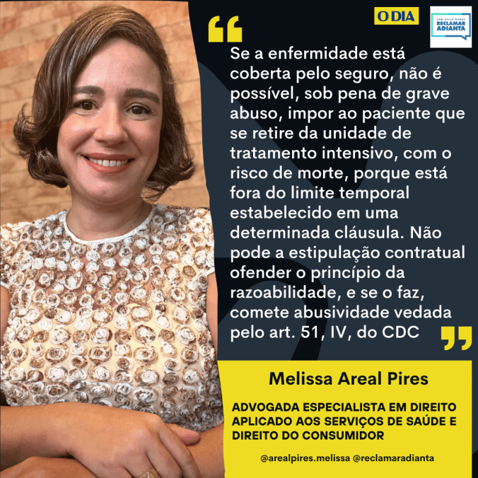 A advogada Melissa Areal Pires, especialista em Direito à Saúde, destaca que a Lei 9656/98, que regulamenta os planos de saúde, veda, no artigo 12, II, “a”, a limitação de prazo para internações hospitalares. Além disso, o STJ editou a Súmula 302, que considera abusiva e, portanto, nula de pleno direito, qualquer cláusula contratual que limite a duração da internação do segurado. Segundo Melissa, isso se aplica a casos em que o paciente precisa prorrogar sua permanência em unidade de tratamento intensivo ou ser internado novamente devido a complicações da mesma doença coberta pelo plano de saúde.