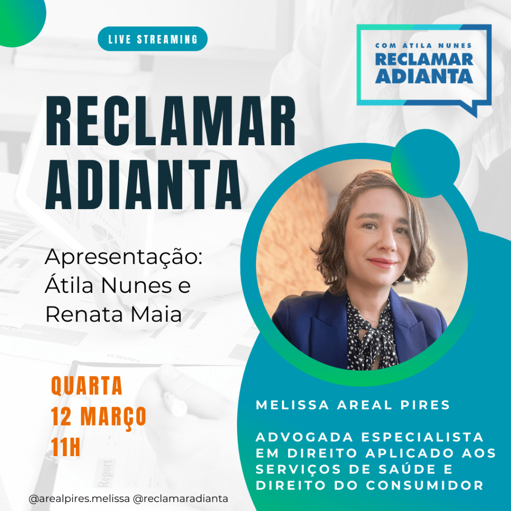 Hoje, 12/3/2025, é dia da minha participação no Programa Reclamar Adianta @reclamaradianta, apresentado pelo Deputado Estadual Átila Nunes @atilanunesoficial e jornalista Renata Maia @renata.maia2.