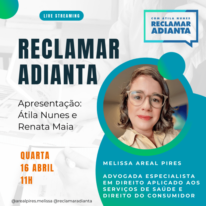 Hoje, 16/4/2025, é dia da minha participação no Programa Reclamar Adianta @reclamaradianta, apresentado pelo Deputado Estadual Átila Nunes @atilanunesoficial e jornalista Renata Maia @renata.maia2.