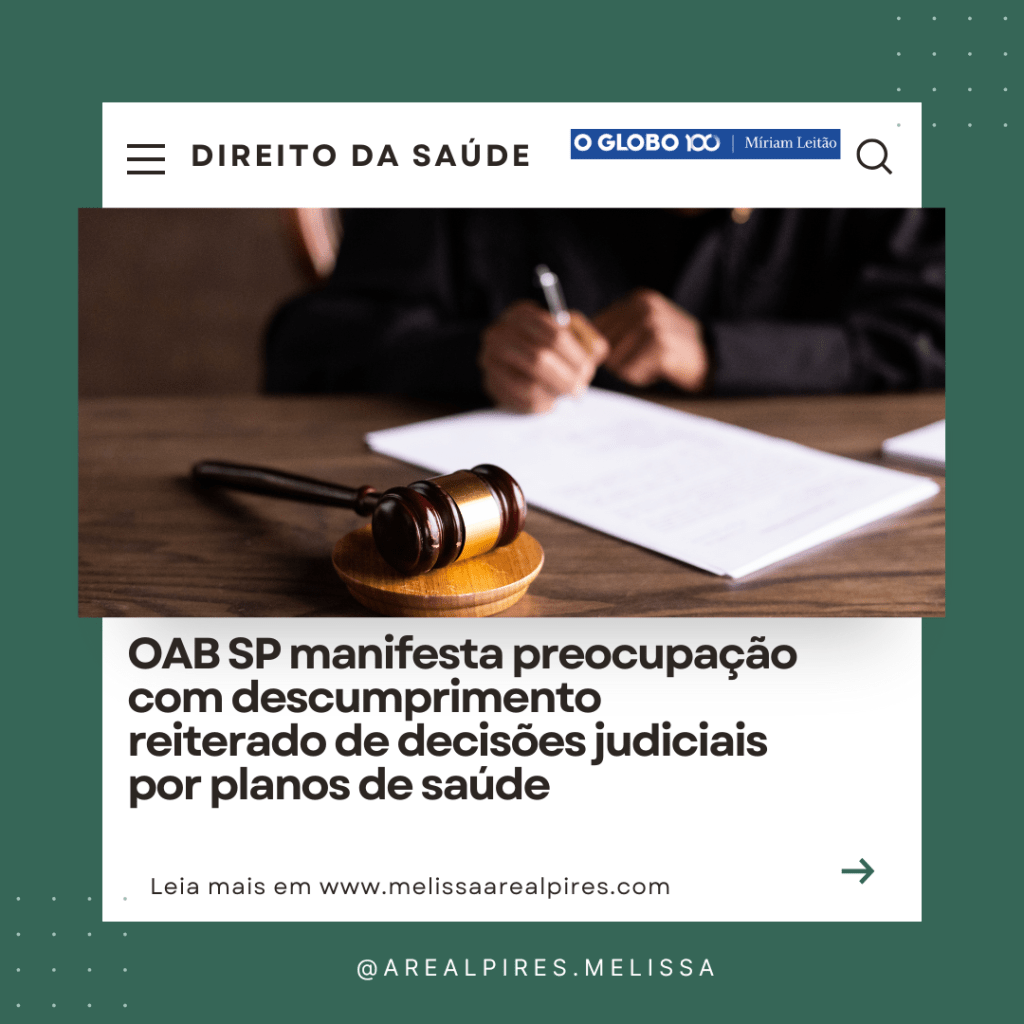 Leia aqui a nota da Comissão de Direito Médico e da Saúde da OAB/SP: https://www.oabsp.org.br/jornaldaadvocacia/25-06-02-1438-oab-sp-aponta-descumprimento-de-decisoes-judiciais-por-operadoras-de-planos-de-saude
