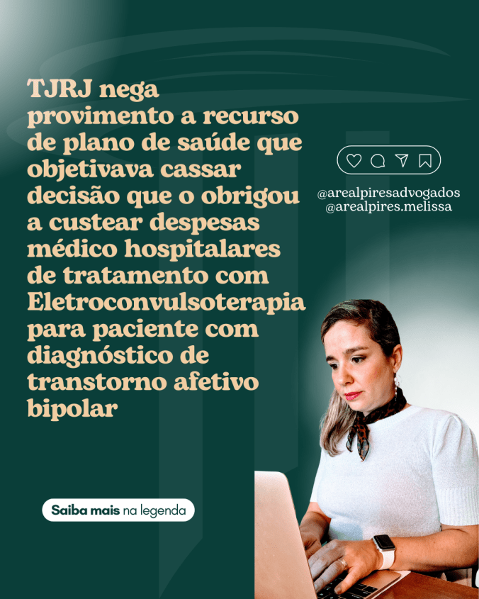 Ao julgar recurso de agravo de instrumento interposto pela operadora de plano de saúde AMIL, o Tribunal de Justiça do Estado do Rio de Janeiro reconheceu a abusividade de negativa de cobertura das despesas médico-hospitalares do tratamento, com Eletroconvulsoterapia (ECT), de paciente diagnosticada com transtorno afetivo bipolar e episódio depressivo grave, bem como as despesas com os demais dos procedimentos clínicos que se façam necessários ao tratamento de saúde prescrito à paciente, mantendo decisão liminar proferida pelo juiz de Direito André Aiex Baptista Martins, titular da 33ª Vara Cível da Comarca da Capital do Tribunal de Justiça do Estado do Rio de Janeiro (leia aqui https://melissaarealpires.com/2024/12/05/tjrj-obriga-plano-de-saude-a-dar-cobertura-a-despesas-com-tratamento-de-eletroconvulsoterapia-para-paciente-com-diagnostico-de-transtorno-afetivo-bipolar-e-depressao/)