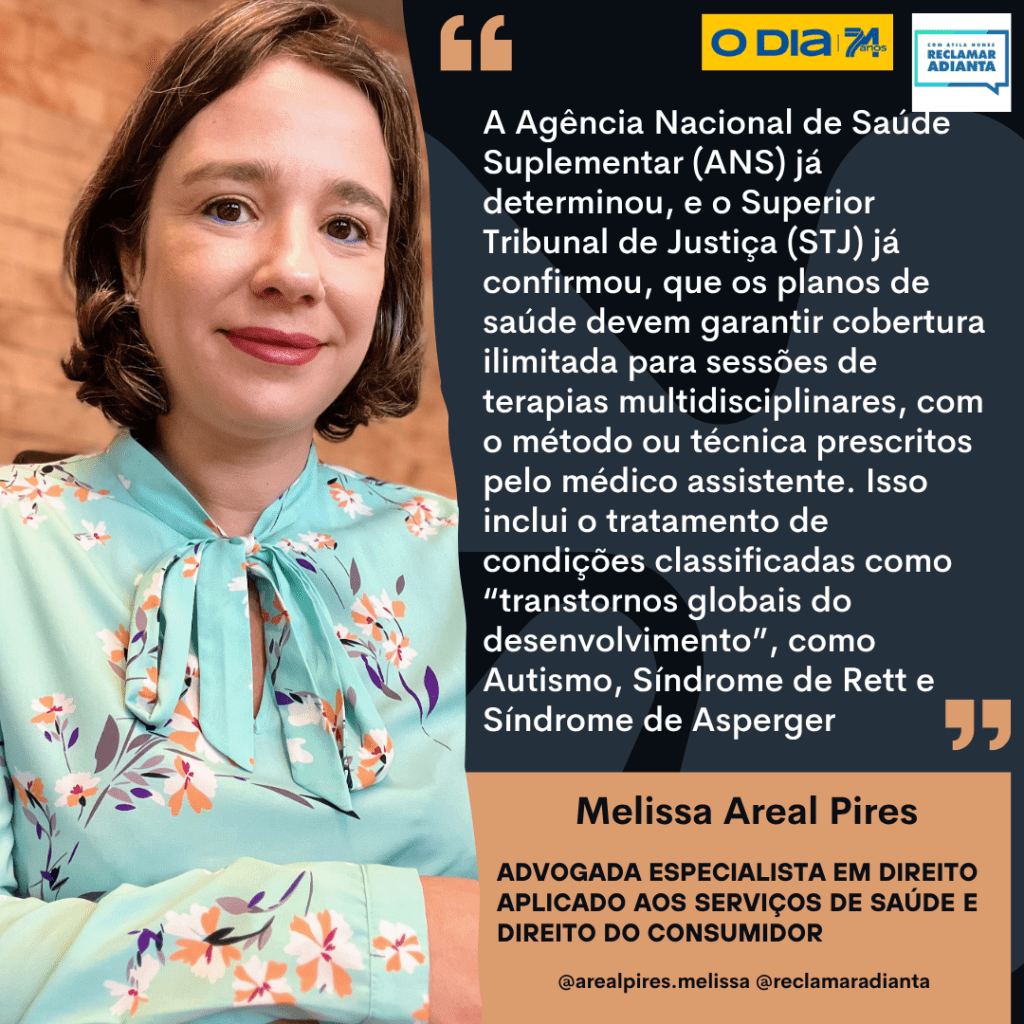 “A Agência Nacional de Saúde Suplementar (ANS) já determinou, e o Superior Tribunal de Justiça (STJ) já confirmou, que os planos de saúde devem garantir cobertura ilimitada para sessões de terapias multidisciplinares, com o método ou técnica prescritos pelo médico assistente. Isso inclui o tratamento de condições classificadas como “transtornos globais do desenvolvimento”, como Autismo, Síndrome de Rett e Síndrome de Asperger”, finaliza a especialista.