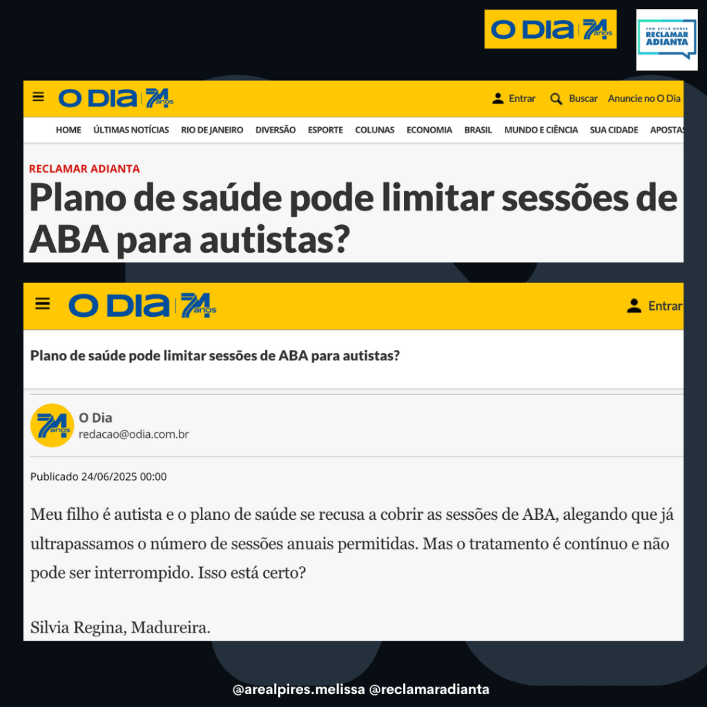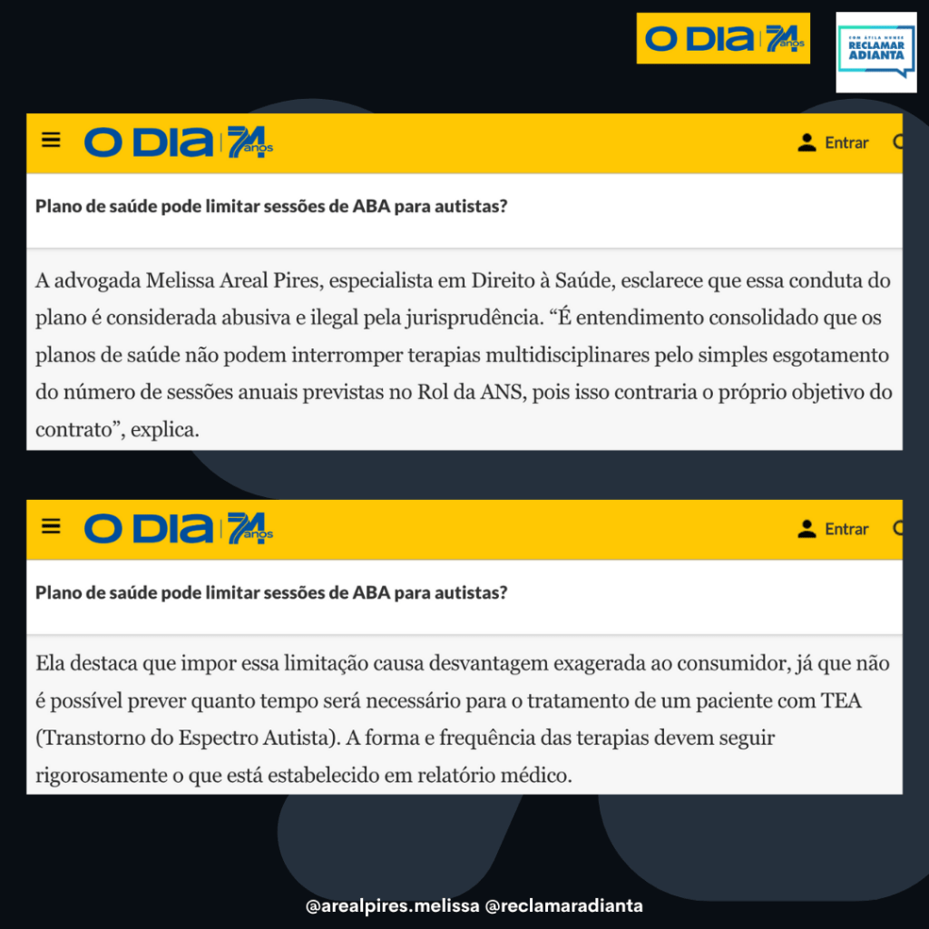 A advogada Melissa Areal Pires, especialista em Direito à Saúde, esclarece que essa conduta do plano é considerada abusiva e ilegal pela jurisprudência. “É entendimento consolidado que os planos de saúde não podem interromper terapias multidisciplinares pelo simples esgotamento do número de sessões anuais previstas no Rol da ANS, pois isso contraria o próprio objetivo do contrato”, explica.