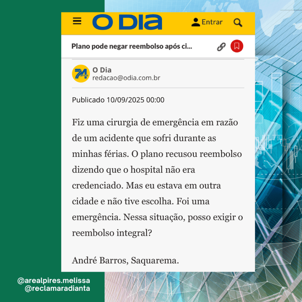 Fiz uma cirurgia de emergência em razão de um acidente que sofri durante as minhas férias. O plano recusou reembolso dizendo que o hospital não era credenciado. Mas eu estava em outra cidade e não tive escolha. Foi uma emergência. Nessa situação, posso exigir o reembolso integral?