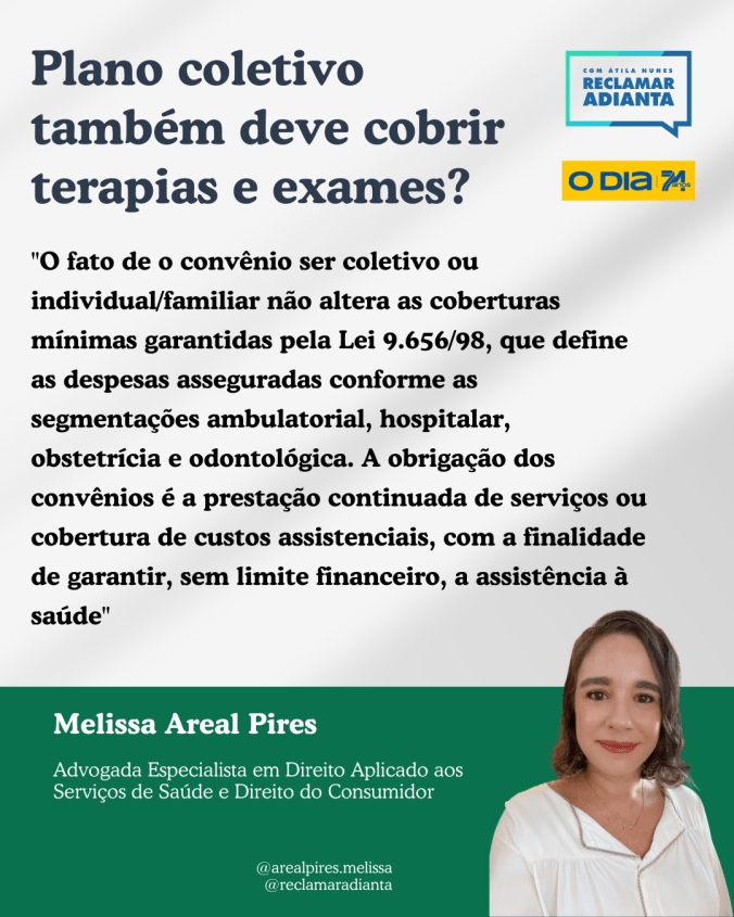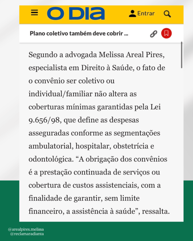 Segundo a advogada Melissa Areal Pires, especialista em Direito à Saúde, o fato de o convênio ser coletivo ou individual/familiar não altera as coberturas mínimas garantidas pela Lei 9.656/98, que define as despesas asseguradas conforme as segmentações ambulatorial, hospitalar, obstetrícia e odontológica. “A obrigação dos convênios é a prestação continuada de serviços ou cobertura de custos assistenciais, com a finalidade de garantir, sem limite financeiro, a assistência à saúde”, ressalta.