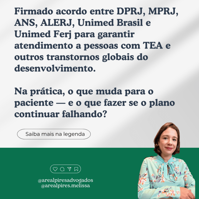 O Ministério Público do Estado do Rio de Janeiro, Defensoria Pública do Rio de Janeiro, ANS, ALERJ anunciaram acordo com a Unimed Brasil e a Unimed Ferj para reforçar o atendimento a pessoas com Transtorno do Espectro Autista (TEA) e outros transtornos globais do desenvolvimento, após denúncias de falhas assistenciais, negativas de cobertura e dificuldades de acesso ao tratamento. Segundo a notícia destacada no portal do MPRJ e reportagens que reproduziram o conteúdo do compromisso, o termo prevê planejamento assistencial específico, canal exclusivo de atendimento, apuração de pendências de reembolso e medidas concretas para organizar o fluxo de cuidado.