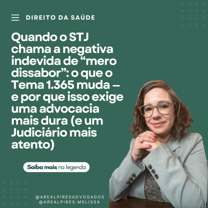 A ligação chega quase sempre no mesmo horário: fim da tarde, quando as clínicas estão fechando, quando o hospital troca plantão, quando a família já gastou o dia inteiro tentando “resolver administrativamente”. A voz do outro lado é a de quem aprendeu a falar rápido para não chorar: “Dra., negaram.” Negaram a terapia do TEA porque “excedeu sessões”; negaram o home care porque “não consta no rol”; negaram a internação porque “faltou documento”; negaram o medicamento porque “não há diretriz”; negaram, negaram, negaram. Na vida real, a negativa não é uma vírgula contratual. É uma interrupção. E, em saúde, interrupção é risco. (E foi justamente sobre o dano moral desse risco — ou da violência institucional que ele carrega — que o STJ decidiu no Tema 1.365.)
